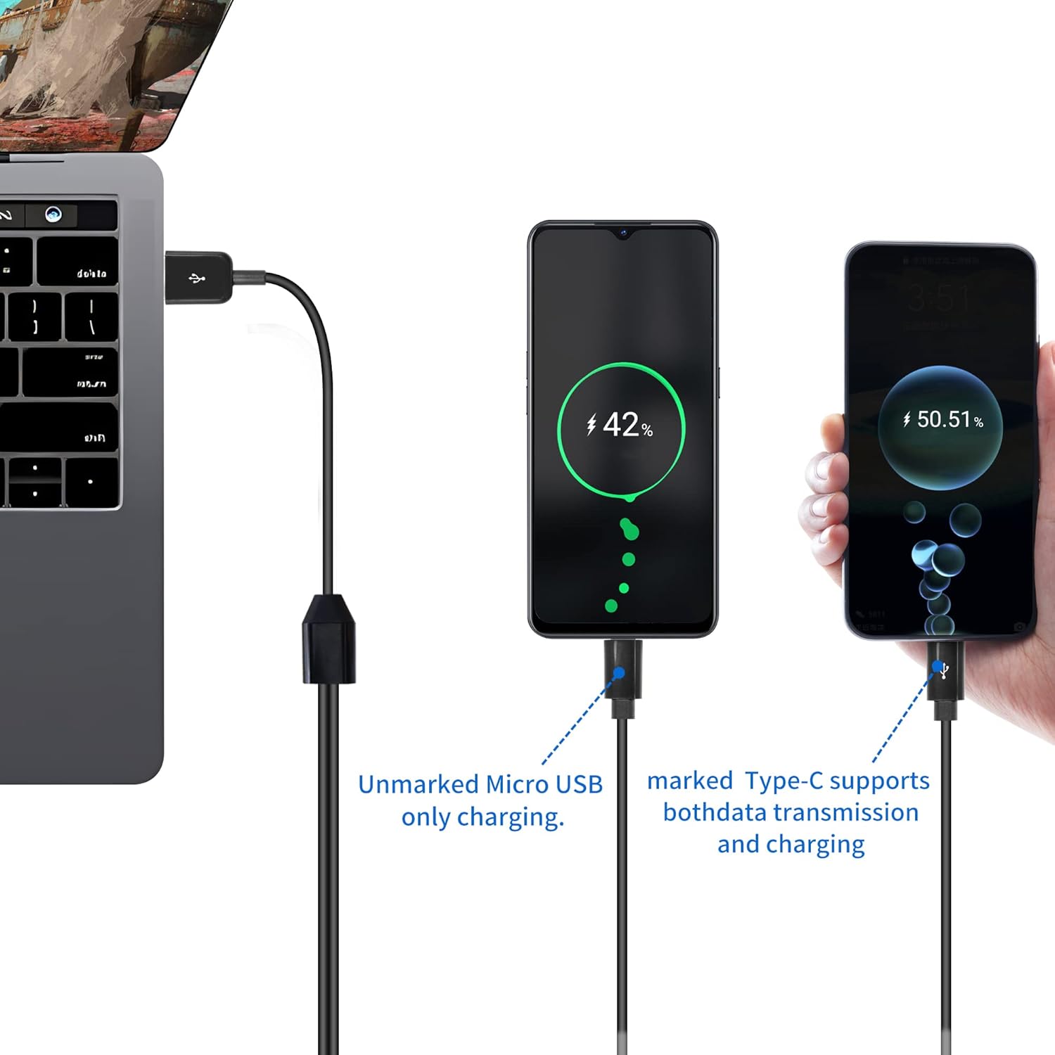 Chargement et transfert de données : le câble multi-chargeur peut charger 2 appareils électroniques en même temps, le port Android ne peut charger que et ne prend pas en charge le transfert de données. Le port de type C marqué avec transfert de données est adapté pour le chargement et le transfert de données.